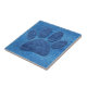 Pawprint pour chien de dessin animé. Tuile céramique personnalisée avec imprimé arrière - plan en denim bleu. Tout ce qui est vu est imprimé, aucun tissu réel ne sera utilisé dans la fabrication de ce produit. Idée cadeau pour les amoureux de les chiens.