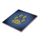Empreinte de patte de chien sur arrière - plan bleu marine.