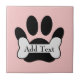 Belle bande dessinée style chien patte et os. Carreaux céramiques carrés personnalisés. Version rose bébé. Une idée cadeau unique pour les amoureux de les chiens. Modifier le texte pour la personnalisation.