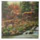 Whitetail fait et buck marcher à travers la forêt le long d'un ruisseau en cascade de rochers et cascades. OEuvre d'art réaliste créée à partir d'une peinture à l'huile originale de Crista S. Forest, artiste équin et animalier.