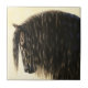 Cheval friésien Noir avec une longue crinière ondée montrant des temps chauds et jaunes de la lumière du soleil de la fin de l'après-midi. OEuvre d'art réaliste créée à partir d'une peinture à l'huile originale de l'équine et de l'artiste faunique Crista S. Forest.