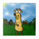 Petit chien de prairie drôle de bande dessinée avec les yeux écarquillés et une grimace jaune toothy ondulant dans un domaine. Art numérique original de bande dessinée par Taylor Addams.