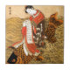 Une femme japonaise monte un Koi géant tout en lisant des lettres.