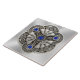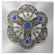 Carreau de céramique carré d'un médaillon argenté avec un saphir bleu de scintillement au centre et trois saphirs bleus de entourage sur l'argent brillant.