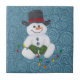 Ce carrelage Sitting Snowman présente une impression de peinture acrylique d'un bonhomme de neige assis tenant une chaîne de lumières de Noël. Ajoutez un cadre ou faites-le dans une boîte à bijoux pour une idée cadeau de vacances supplémentaire.