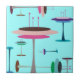 L'art déco a dénommé la conception dans la turquoise, le rose, le gris et une éclaboussure de pourpre. Les images ressemblent aux tours futuristes avec de longs poteaux et complétées avec l'antenne. Est-ce science-fiction la rétro ou ?