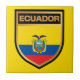 Le drapeau national de l'Equateur est infusé dans une fausse forme de bouclier doré avec le nom du pays ajouté au-dessus du drapeau.