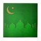 Illustration islamique élégante : silhouette de mosquée dorée avec une lune et une étoile sur un arrière - plan vert grinçant.