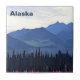 Montagnes bleues, eau du lac bleu, arbres vert foncé, algues roses et couvert. Une représentation de l'été dans l'extrême nord. Le texte "Alaska" apparaît également. Les moustiques ne sont pas inclus.