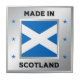 Un design qui présente un carré en faux argent, qui a été conçu pour ressembler à l'intérieur a été chanfreiné. Au centre du carré se trouve le drapeau écossais. Autour de la carré, on trouve le texte "Made In Scotland" ainsi que 6 étoiles décoratives.