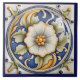 élégant carrelage en céramique classe, motif peint à la main française, or méditerranéen luxueux design, or crème bleu et blanc, fleurs primrose d'été floral, luxueux pavot, authentique peinture traditionnelle classique, vintage rétro antique nouveau, art déco britannique europe, indigo jaune or fleur