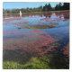 Vue des canneberges restantes non encore récoltées dans une tourbière d'une ferme de canneberges à Long Beach, Washington. Photo prise en octobre 2017.