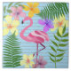 Beau flamant rose en combinaison avec coloré, aquarelle, fleurs tropicales et palmiers. Adorable, motif rayé, été, carreaux en céramique luau.
