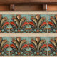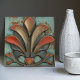 Présentant "Crimson Flare", une mosaïque de céramique magnifiquement artisanale qui respire le charme et le style de l'art moderne du milieu du siècle. Cette pièce présente un éventail frappant d'éléments en forme de goutte de lacet, chaque forme baignée dans un mélange de couleurs riches. Les teintes vibrantes de pourpre et de rouge écarlate sont magistralement juxtaposées aux tons sobres de fusain et de taupe, créant un effet visuel dynamique. La surface du carrelage est mouchetée d'une fine brume de fissures dorées et en cuivre, rappelant une patine vintage qui ajoute profondeur et caractère à la conception. Un motif central, détaillé dans une subtile sienne brûlée, ancre la composition, symbolisant la chaleur et la passion inhérentes au design. Placé sur un fond de turquoise avec des touches d'aquamarine, ce carrelage est un élément de déco, parfait pour ajouter une touche d'élégance rétro à toute pièce.