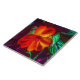 Ce carrelage en céramique de 6" présente une photo originale de ZoeSPEAK d'une fleur d'impatiens orange rouge. Sunlight ajoute des reflets jaunes aux pétales et illumine les feuilles verts, donnant un bord net aux ombres violettes sur les feuilles ci-dessous.