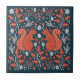 Motif de forêt d'écureuils rouges avec des cônes de pins, branches de pins, glands, feuilles de chêne et baies sur un arrière - plan vert turquoise foncé. Idéal pour une maison de lac ou un décor de chambre saisonnier. Art original de Nic Squirrell.