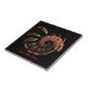 Une image fractale multicolore (rouge, jaune et orange) en spirale, ressemblant à un oiseau ou à un dragon plumé, sur un arrière - plan sombre. Customisez en ajoutant votre propre texte.