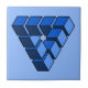Obtenez cette belle tuile en céramique avec cet impossible triangle fait de cubes noirs et bleus sur un arrière - plan bleu. Un triangle impossible sous forme de cubes bleus. Aussi appelé transformation impossible ou construction impossible. Vous en trouverez beaucoup sur Internet, mais je pense que le mien est très bien exécuté.