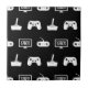 Comportant un motif vintage décoratif avec des jeux vidéo et la conception orientée de jeu sur un arrière - plan noir de couleur qui peut être customisé à n'importe quelle couleur faite sur commande. Caractéristiques de conception ce d'amusement de jeu vidéo rétros et contrôleurs de jeu vidéo, manettes, et plus modernes ! Faites un cadeau parfait pour le gamer dans votre vie.