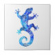un tatouage décoratif avec un petit gecko, un lézard ou un autre reptile, un amphibien à l'aquarelle bleu surréaliste et des motifs ornementaux.