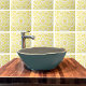 Ce carrelage jaune géométrique est juste la chose pour votre cuisine Backsplash. Vous pouvez également l'utiliser dans la salle de bain. Le design est un médaillon jaune. L'arrière - plan est blanc. De Fay Jones Day, fabricant de tuiles de l'Oregon.
