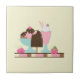 Un carrelage en céramique sur le thème de la crème glacée douce. Illustré avec un bar à crème glacée au chocolat, un sundae à 3 boules avec une cerise sur le dessus, et un flotteur à fraise avec des poupées à la crème fouettée sur le dessus. Petites fraises et cerises. Couleur arrière - plan jaune.