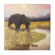A digital painting of a grizzly bear approaching a pond while the sun descends over distant mountains. Customize by adding your own text.