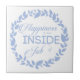 Happiness est dans un job graphic inside with a blue wreath and heart. Happiness, love and inner peace is always from within. Custom graphic design made with love.