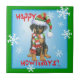 Célébrez la saison des Fêtes avec un mignon chiot Doberman Pinscher portant un casquette et une écharpe plein au milieu des flocons de neige et les mots, Happy Howlidays! Idée cadeau de vacances idéal pour la famille et les amis Dobie-aimant.