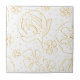 Carrelage en céramique avec feuille d'or Abstraite contourne les fleurs. Modèle floral vintage. Silhouettes de fleurs sur arrière - plan blanc. Carrelage en céramique arrière - plan de style minimaliste. Collection Icy Tenderness.