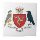 La crête est soutenue par un faucon pèlerin, dérivé de l'époque du roi Jean Ier de Mann; et un corbeau, tel qu'il est présenté dans la mythologie nordique, en accord avec l'histoire viking de l'île.