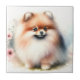 Un chien poméranien moelleux avec un manteau orange et blanc vibrant, avec de grands yeux expressifs et une expression joyeuse. Il se dresse au milieu de fleurs douces et pastel et de douces éclaboussures d'aquarelle, créant une atmosphère chaleureuse et accueillante. L'arrière - plan est léger et aéré, rehaussant la fourrure moelleuse du chien et son comportement ludique.