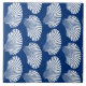 Carrelage en céramique dans un motif d'impression en bloc, basé sur une coquille de pétoncle, en blanc sur un arrière - plan bleu marine / indigo