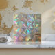 This luminous ceramic tile features an elegant starburst geometric, with radiant iridescent tones that shift beautifully between pearl, aqua, and lilac with gold accents. The softly reflective surface evokes the look of mother-of-pearl and adds a touch of refined luxury to any space. Perfect as a statement accent or combined in multiples for a glamorous backsplash or decorative wall display, this tile brings timeless sophistication with a modern shimmer. Note: design contains generative content.