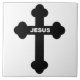 JÉSUS EN TEXTE BLANC SUR UNE CROIX NOIRE