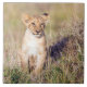 A young lion sitting beside a termite mound. This Image, taken on a safari au Kenya, Masai Mara Game Reserve. © Angelika Stern