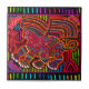Kuna Indian mola, San Blas Island, Cuna Indian Mola, mola folk art, black navy, orange pink green, indie art, boho decor, vagabond folk art, ethnic folk art, Panama mola, Virginia Vivier.