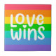 Cette oeuvre présente un arc-en-ciel coloré avec les mots Love Wins.