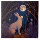 Un lapin profite de la forêt à la lumière de la lune. Le style associe des éléments Art Déco et de l'art folklorique. Les couleurs dominent le bleu et l'orange. C'est une collaboration entre moi et l'IA.