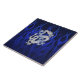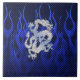 Un applique de dragon en chrome comme le style argenté sur une copie d'arrière - plan de fibre de carbone de flammes de bleu marine à porter ou partager à toutes les occasions de fête.