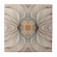 Conception de carreau de céramique "d'OM principal," une fractale d'Apophysis par Susan Wallace. © 2009, Susan Wallace de Copyright. Conception abstraite composée de pétales marbre-texturisés se développant en spirales vers l'intérieur à un centre rayonnant. Aux nuances amorties de bronzage, de bleu, l'or et la crème.