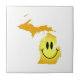 Produisez des sourires avec le ce Michigan font face à tiré sur la carte du Michigan. Cette conception place le visage (exactement comme traditionnel sur la forme du Michigan. La forme de carte du Michigan est colorée avec les mêmes couleurs jaunes et l'ombrage comme traditionnel il ne pourrait pas y avoir un tel mignon, l'amusement, et la manière humoristique de montrer votre fierté d'État du Michigan en tant que ce Michigan font face superposé sur la carte du Michigan. Rendez-le évident à chacun que le Michigan vous rend heureux !