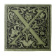 Charmant lettre décorative X monogramme initial. Typographie de style calligraphie. William Morris première lettre en noir sur vintage avocat vintage doublure de livre avec des feuilles de Ginkgo biloba blanc cassé.
