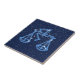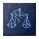 Carrelage dans le symbole zodiaque pour Libra en bleu argenté doux, recouvert des étoiles de la constellation, contre un ciel étoilé arrière - plan en bleu profond de minuit