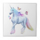 La licorne hued d'arc-en-ciel entourée par des papillons de l'assortiment colore le carreau de céramique
