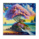 Une belle peinture numérique d'une île verdoyante au milieu de l'océan. L'île est recouverte d'arbres et de fleurs luxuriants, et l'eau est d'un bleu clair. Un petit bateau est ancré dans la baie, et quelques personnes se relaxent sur la plage. Ce tableau est parfait pour tous ceux qui veulent s'évader dans un paradis tropical.
