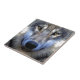 Les dessous de verre de tuile de loup ont conçu avec une photographie du visage d'un loup gris.