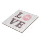 Ce design présente un ensemble de lèvres pastel et de LOVE dans un motif rayé noir et blanc.