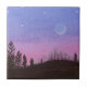 Une aquarelle représentant une lune de croissant et des étoiles au-dessus d'un paysage rural orne ce carrelage décoratif !