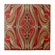 Symmetrical ornamental design with golden patterns flowing in elegant curves over a vibrant red background. The details include stylized shapes and arabesques, centered around a diamond-shaped motif. The design stands out for its luxury and sophisticated style.